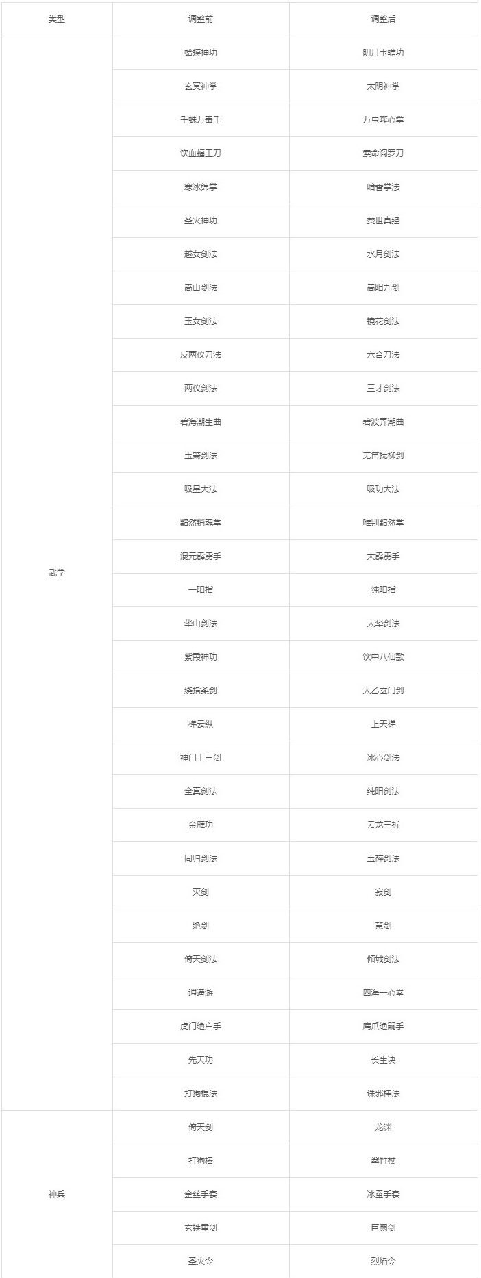 尊敬的各位玩家:为了给各位玩家提供更好的游戏环境,游戏将定于 7月10日对官方双平台区服进行维护 ,如遇特殊情况,更新时间可能会提前或延时,维护完成即可正常游戏,谢谢您对游戏一直以来的支持与理解!官方双平台区服维护时间:7月10日14:00-16:00;本次维护奖励:千机令*1+金叶子*200; 更新内容:调整与优化:1、调整了一系列武学名称、武学介绍、NPC、神兵名称,完善《铁血武林