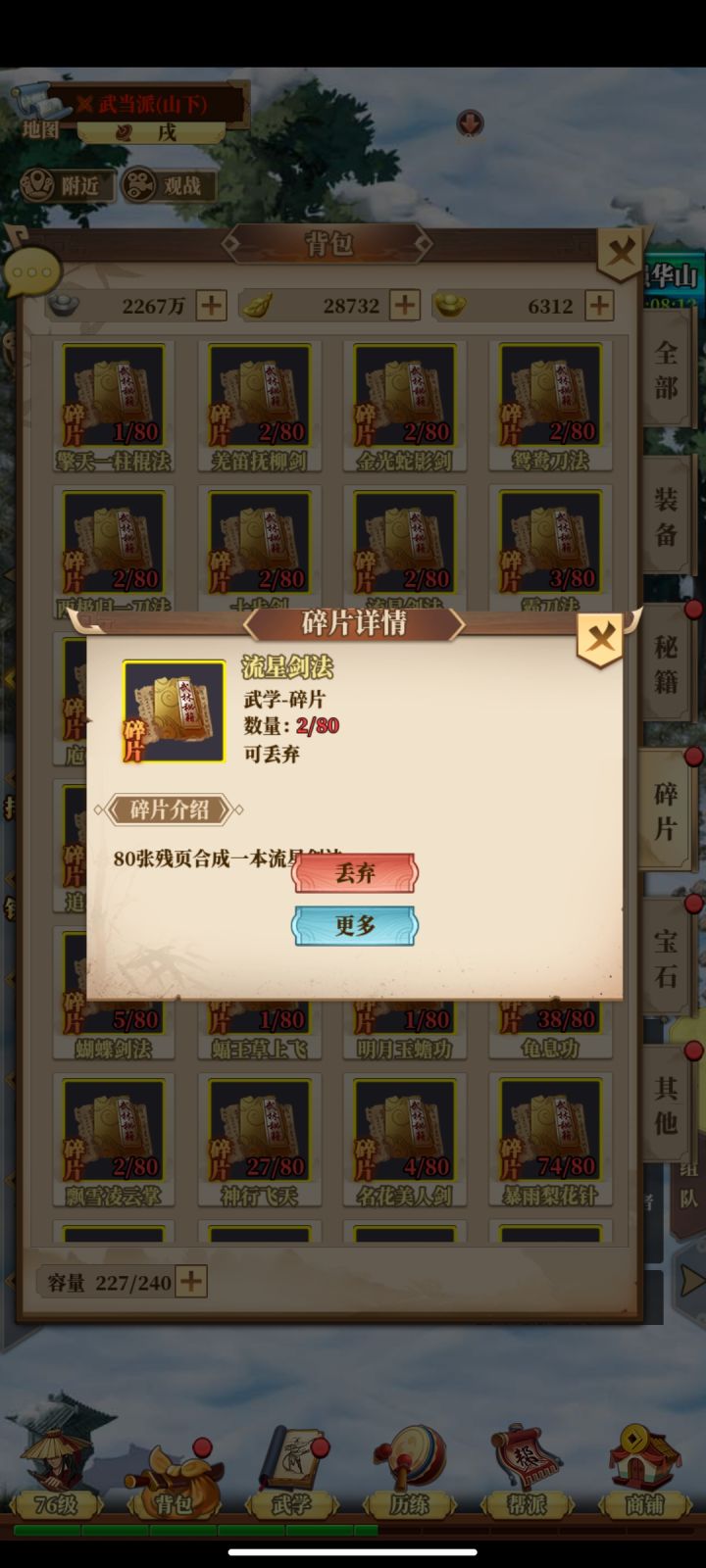 开个吐槽贴,太坑了,多余的武学碎片只能丢弃?都是一天一天熬出来的,结果开出来几十片废物武学,要集齐何年马月了,食之无味弃之可惜,不丢吧又浪费背包,本来就不够用。能不能做个人,开放资源转换或者回收。大气点,不要那么小心眼,什么都要算计,赞同的回帖顶起来,人多力量大!!!