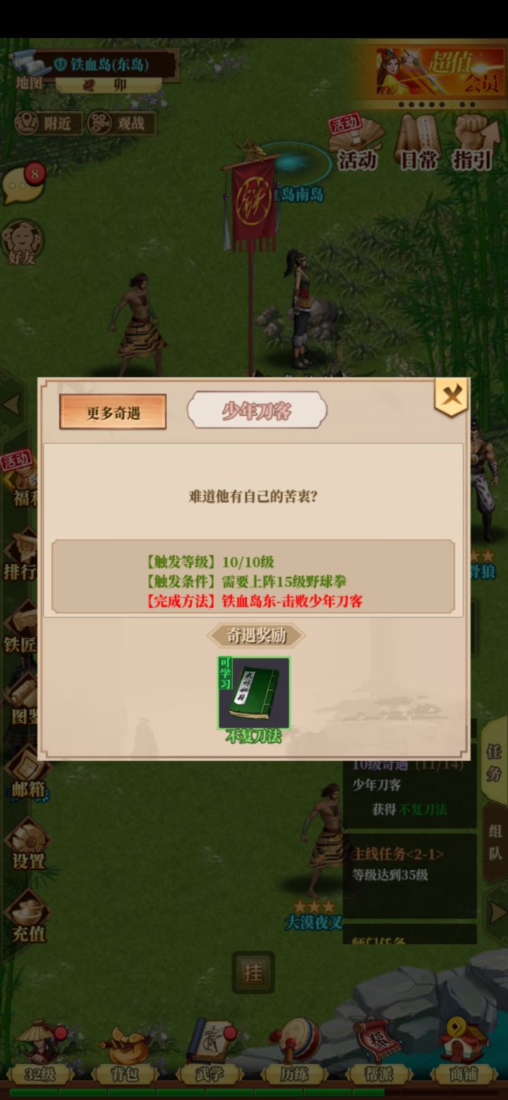 各位各位大佬,我罗马王子难得来写下铁血论文,铁血武林伴着许多大侠有的已经快3年了,有的刚进入这个坑,其中各位有自己风光时候,也有自己被摩擦的时候,不过这就是这游戏的乐趣吗,好了,言归正题,随着游戏不断更新,叶子和资源也越来不平衡,难度也越来越大,我这里提出些意见,我就从进这个游戏开始说起1.可以简化新手教学,出一个跳过新手指导教程的功能,如全程按照教学过完的可以给50个修炼蛋或者100叶子,不看