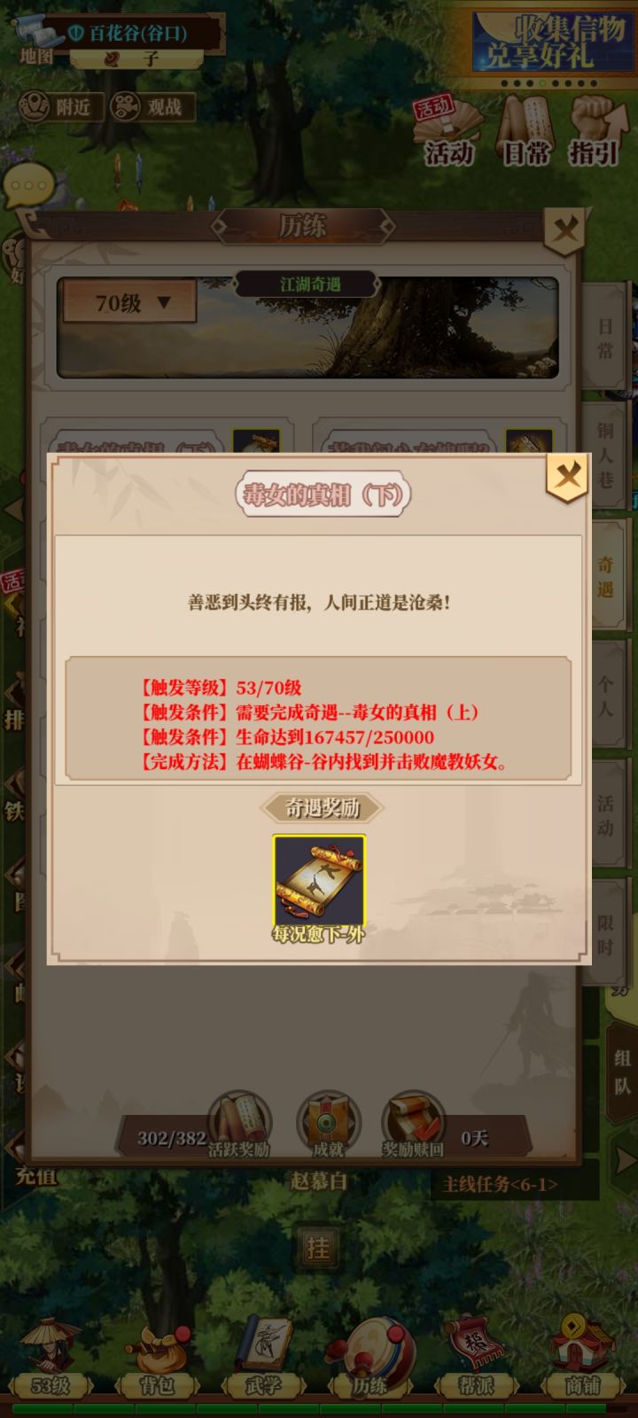 最后呢,我想给游戏一点自我建议,首先是自创,自创武学很重要,威力也挺大属于爆发类伤害武学,不管是新手还是老手大家都是在体验游戏中的内容,而不应该用太低的自创成功几率导致部分玩家的流失,一个成功的游戏是能留住不同层次的玩家,而非只为了效益。在自创环节中,谈谈我所了解的和亲身经历的,我本身是个新手在慢慢成长和坚持中终于迎来了自创,满怀欣喜的准备好了各种自创所需的材料,投入的不仅是金钱和时间,然而呢,得到的却是一次次的失败和无奈,我自创了5次,均以失败告终,每次自创需要近4000叶子,对于我或者轻氪中氪玩家来说,几万叶子付之东流无所收获,确实打击比较大,很容易就选择弃游,因为损失的不光是有限的金钱,更多的是过于失落的情绪。也许有人说一切看运气,但是在我身边类似我的人大有人在,甚至自创10多次依然只有失败而还在坚持的玩家也大有人在,没离开的玩家只是对这游戏的热爱,过于折磨他们对游戏的兴趣和耐心对游戏运行长久真的好吗?
