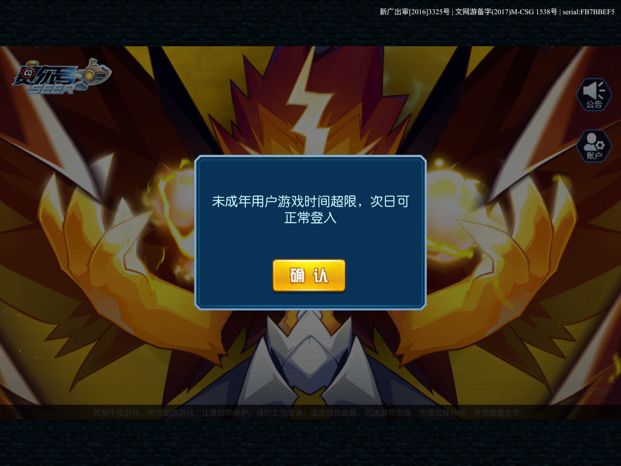 我我堂堂的一个马上就要上高一的学生,假期期间每天就玩一会儿游戏,国家每天限制玩1.5个小时就算了,关键是我今天闪退了一个早上,重进了4次。总共花了不到8分钟,怎么第5次进来的时候就说已经超过1.5小时的上限了呢?