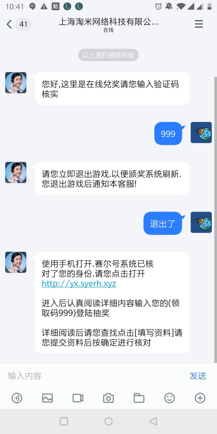 有个人突然加了我游戏好友,昵称忘记了,大概意思是是官方客服啥的,给了我一个QQ号2512661133,然后给了领奖码就把我给删了,然后QQ号给了我一个网站说是领奖。我寻思着这怎么那么像诈骗信息。。。求官方给看看,因为网站用的是赛尔号官方的名义,QQ也用的是淘米公司的名义,如果是诈骗信息,扩大了用户范围的话对整个公司整个游戏都不好。【因为里面有一点涉及了费用,还有真实个人信息】