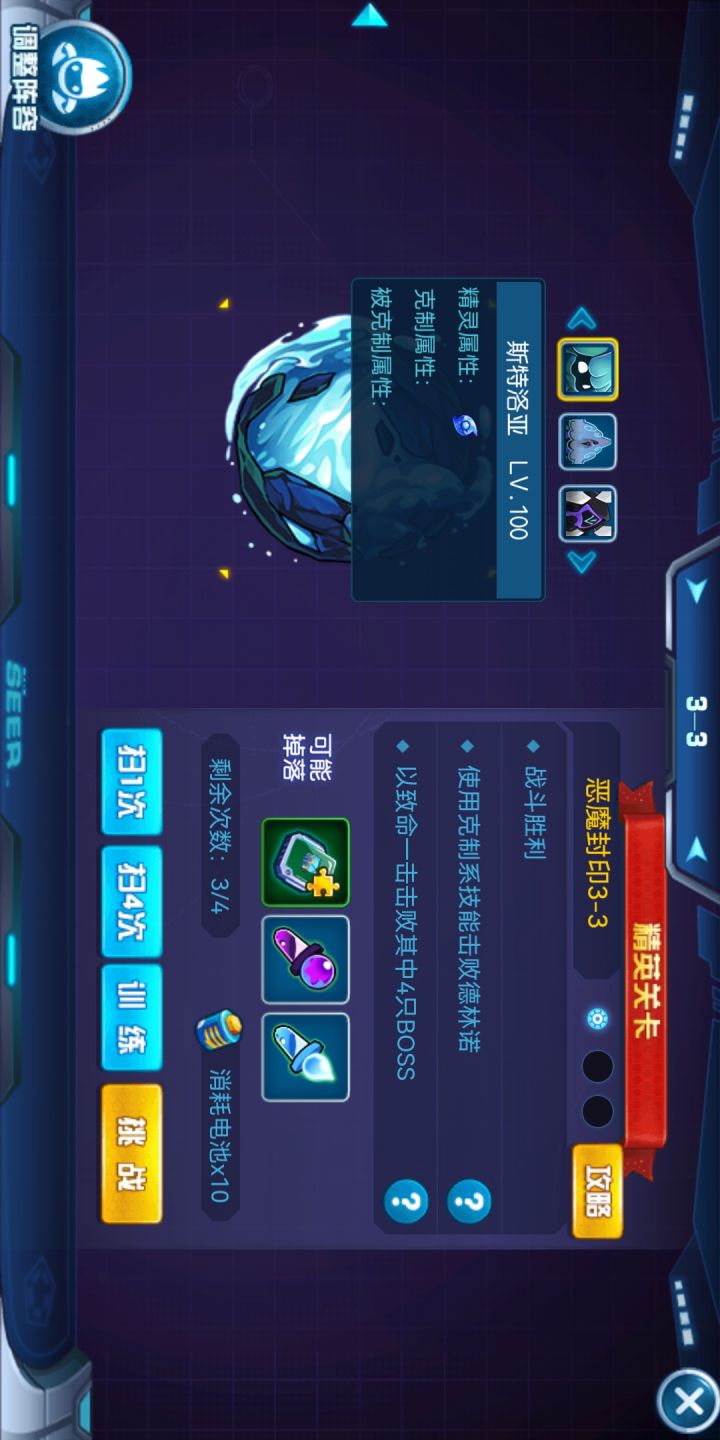 凯奥斯三守,没有哈尔克和艾克里桑。 找到一只有引爆的超能稀有野怪,可以代替吗? 这一关第三只BOSS还得克制致命一击击杀,哪怕去掉一个条件也不至于让我卡这么长时间,要不然就得雷伊和蒙多上了,就算雷伊运气好第一只暴击了,还得用克制击杀第三只。所以想尝试养这只野怪。 如果有更好的办法,快告诉我,谢谢了!😂🙏