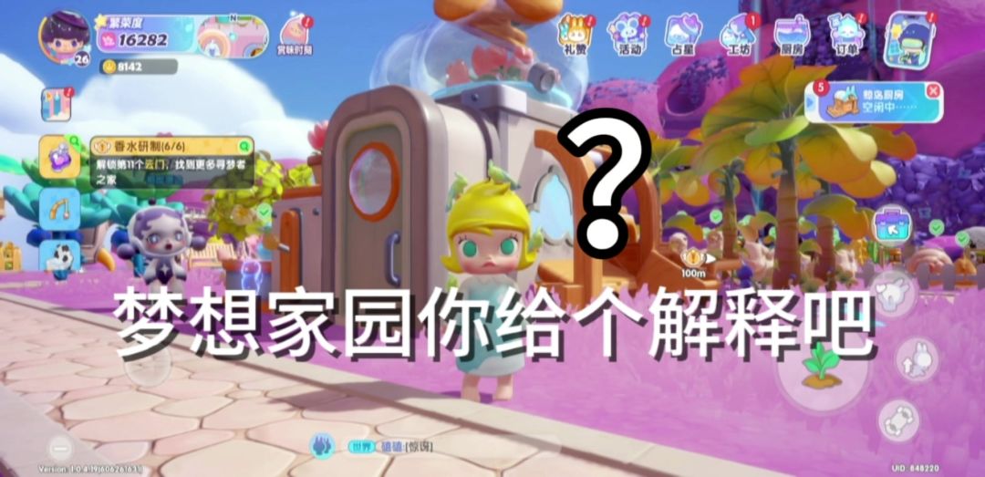 🤔有bag,快修快修,实际上在这之前我还依靠滑板和秋千卡到地图底下去过,然后会出现加载页面,加载结束就回到占仆师那里#梦想家园 #泡泡玛特梦想家园手游 #梦想家园bug