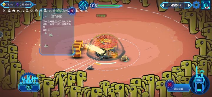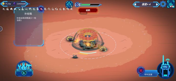 游戏上手比较快前期升级机枪火箭什么都都不重要!只要能过50关就可以。游戏主要补给箱与天赋,开始可能金子不够,这个时候需要存钱罐来赚取利息(不能升级跳过关卡),天赋前期也是需要点关于赚金子的。后期就需要把补给箱点到一轮一次,这样就可以无限选择。同时基地血量也不用先补给箱点(注意60关左右容易直接死需要点护盾天赋),把攻击和暴击天赋使劲怼就可以了,最后再加血量等等。