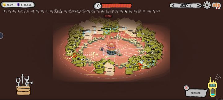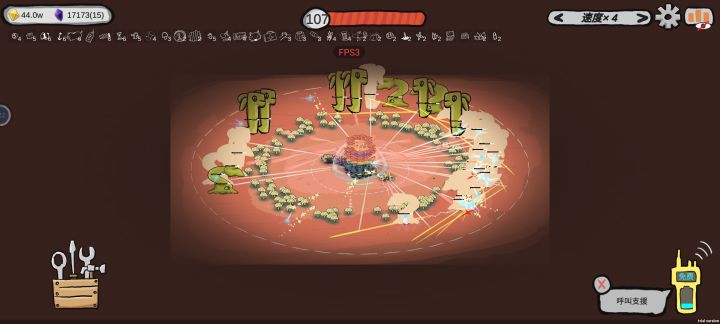 截图木星187关,关关没压力,但相当卡,平均只有FPS1,最终219关游戏卡崩了。。。以前搭配各种满级武器几本在110左右就过不去了,但后来发现用飞镖就轻松过!这是因为飞镖是机制杀,不管怪多少血,都是一下打死而且是穿透打死一整片。单满补给(6个)飞镖大概5下就能清屏。至于其他武器主要要负责的也就控制,尽量别让高速怪一下贴脸拆家,推荐电流类致瘫痪的电塔和冷冻的冻塔以及增加视野的狙击枪,然后怪就都交