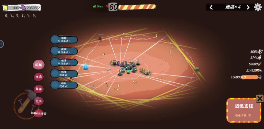非常简单的技巧,不追求高关的可以跳过这个游戏基本就是数据堆叠,所以增益buff都是单纯的数字相加,所以可以随便达到100%及以上生命斩杀,关键就在于选巨锚。但是90波后就是纯粹的重复了,可能有小增强但是我没看出来。对新手的技巧建议:前期先攒个特斯拉,直接点无视怪物,就可以解放双手了。附上截图证明下