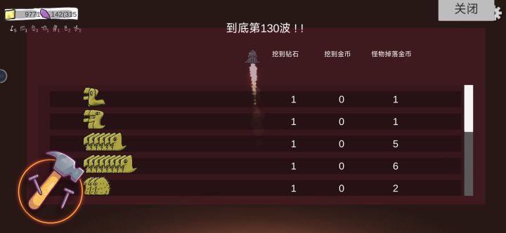 eeee第一次玩1个小时就通了。太简单了吧?前期先点一点机器的属性,然后等钻石够,重制钻石,直接把三个机器数量点上来。之后就无脑怼挖掘机器人,点无视怪物采矿,打几关就回舱,把武器解锁了,然后继续刷钻石,把激光、特斯拉光线拉满,基本就无敌,10分钟就能刷够钻石继续航行了。#杂谈征稿