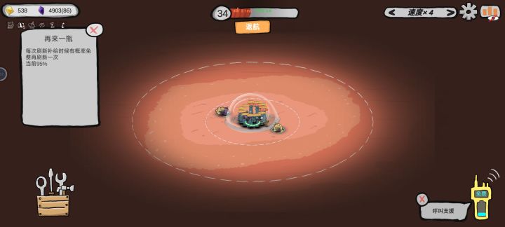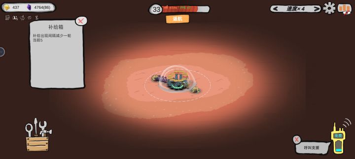 4倍速度下,点击返航时,刚好这一轮来补给,卡死