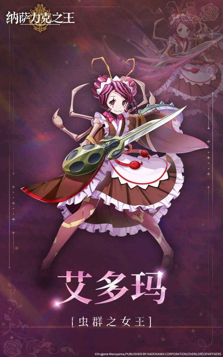 “昴宿星团的艾多玛,请您下达指令”从属于昴宿星团战斗女仆团,这名蜘蛛少女荤素不忌无论是饼干还是肉食全部都在她的狩猎范围之内。今天为大家介绍的是OVERLORD正版授权手游《纳萨力克之王》将会出现的角色——【虫群之女王 艾多玛】, 更多角色信息等待解锁中,大家敬请期待!