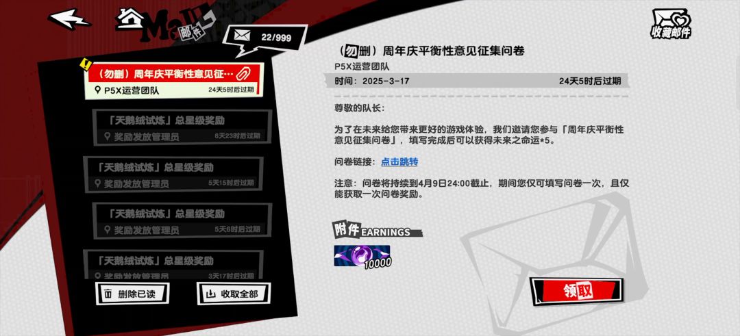 P5X周年庆平衡性征集问卷/5普票/两大核心改动