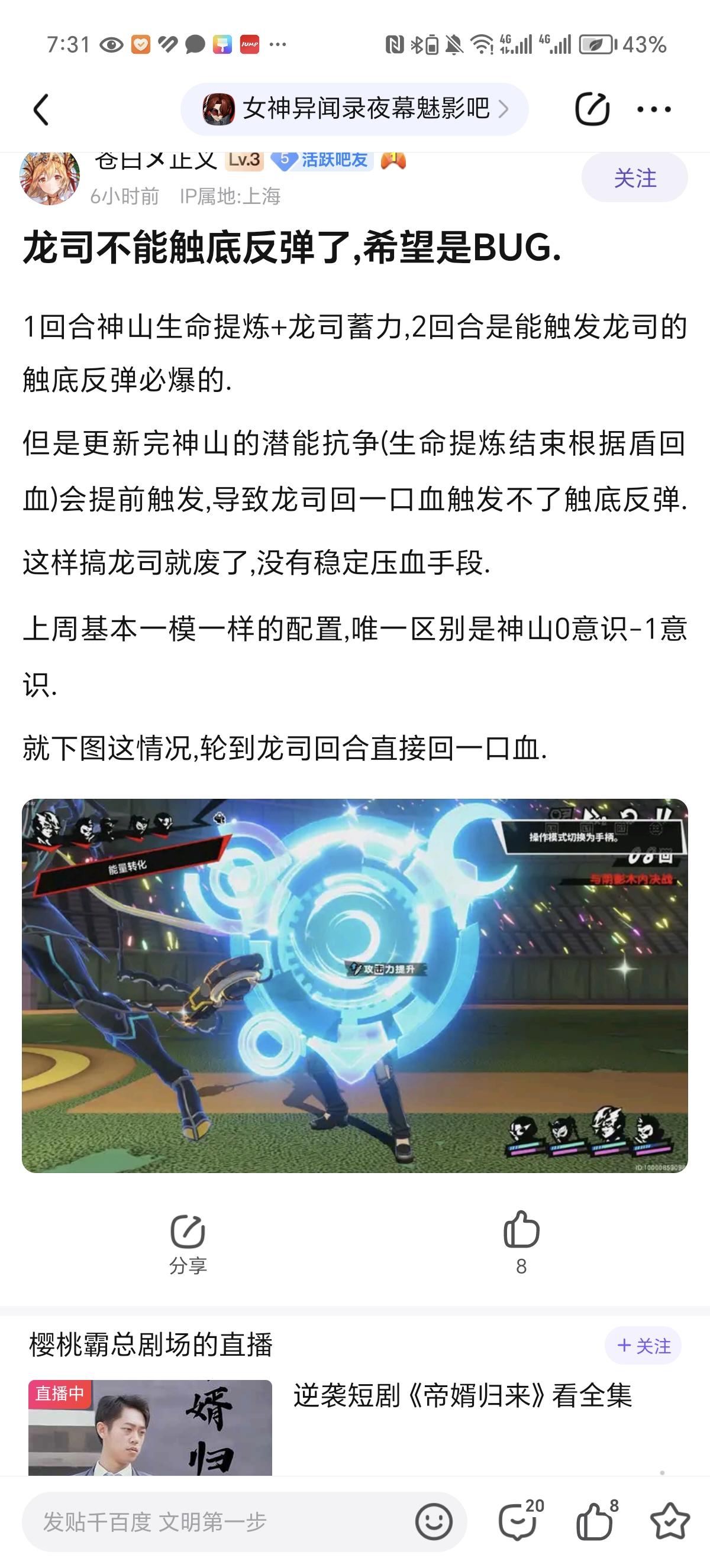 赶紧修复!!!怎么更新一波还更新出龙司的问题了,龙司义气明明是计算血量暴击之后才触发的补血,现在直接补血根本不暴击!!龙司没用暴击哪里能用啊,能不能赶紧修复!!心之海最终战还等着啊#