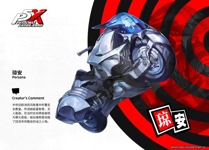 >>>PERSONA!『琼安』介绍中世纪欧洲民间故事中的著名女教皇。传说她极富智慧,无人能敌。在当时女扮男装被视为罪大恶极,她也堪称是动摇了四百年宗教史的谜之人物。————觉醒,你的另一面!————【更多福利欢迎关注】官方微博:官方微信:女神异闻录 夜幕魅影官方16群:官方17群:官方18群:官方19群:官方20群:#女神异闻录夜幕魅影 #P5X #游戏安利 #游戏讨论