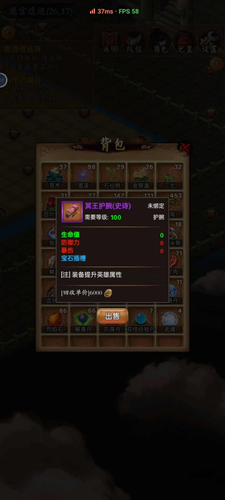 我要吐槽一下,游戏居然不能关闭音乐音效,我调到最小,游戏音乐音效声音还是很大😂,浪费手机电量。还有野外地图第一张图出的蛇尾显示是第二张图出,第二图出的狼尾爆率也太小了,清理完整张图怪物有的时候一个都没有爆出