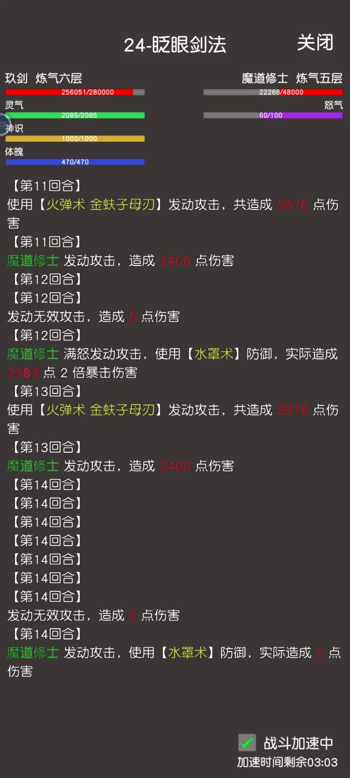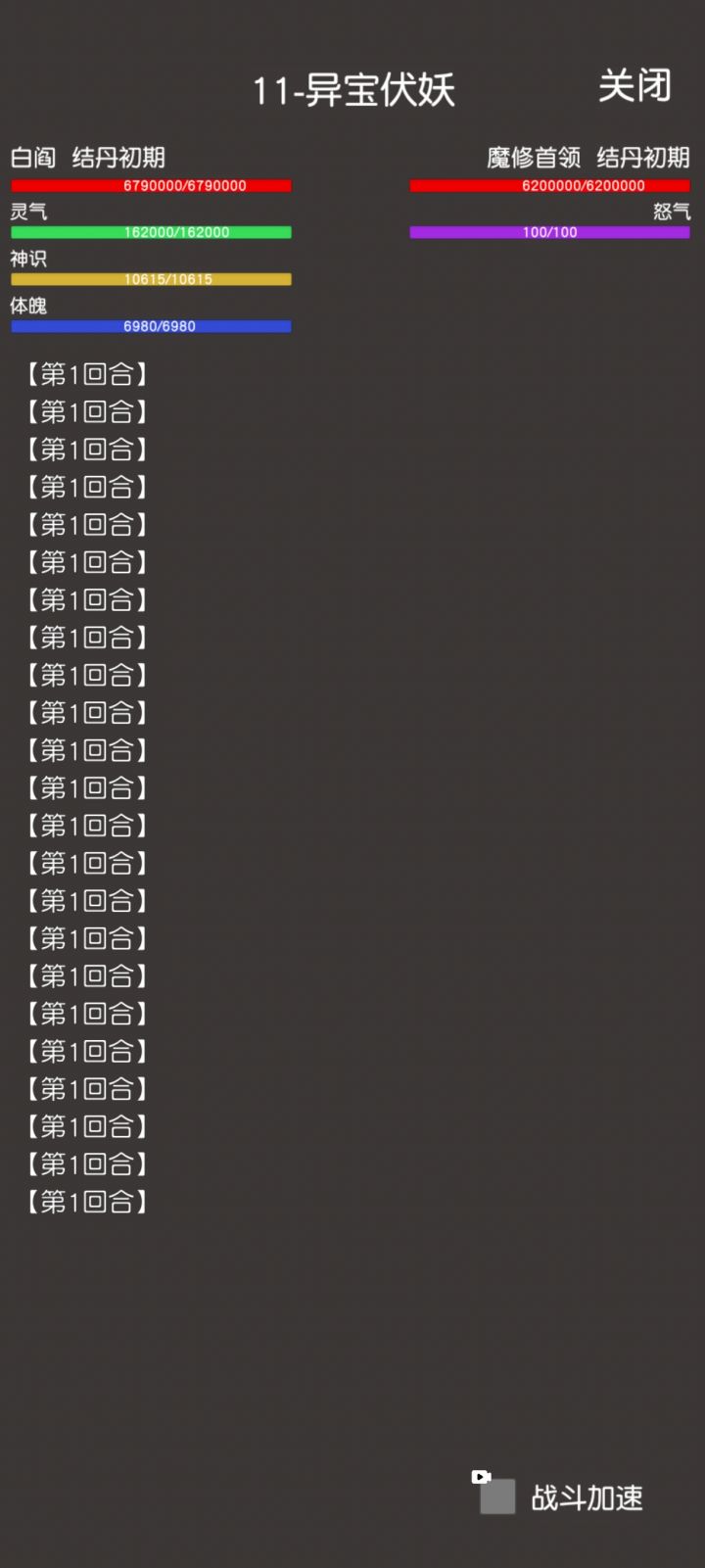 应该算是bug吧?有时候打着打着就刷一排的第几回合,有时候是偶尔出现有时候就是直接卡住了,要点关闭重新进去打。