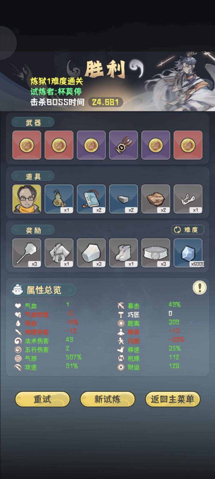 白策也炼狱1毕业了,齐活,打卡留念附上通关截图,有点打懵了,boss一出来就习惯性的开跑,不然还能再快点
