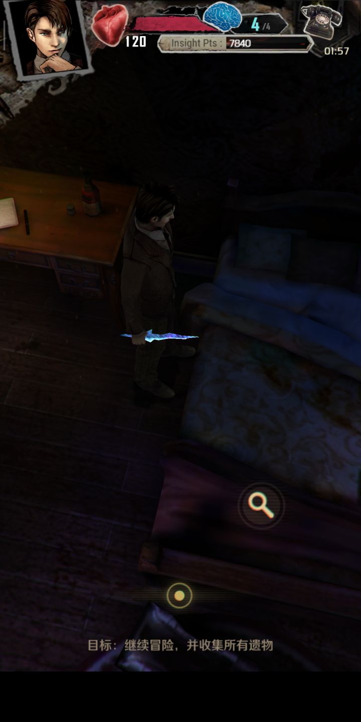 具体操作:点击放大镜按钮睡上床然后在点击一次下床,在睡上去,血量回慢慢回上,只要你点击了就会判定加血,注:也可以在作死一点,等她往你那边看在下床,懂得别进来瞎叫,