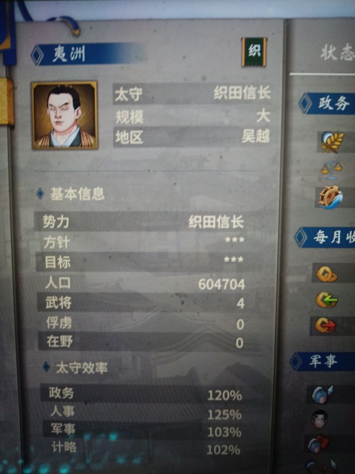早就听说策划大大想加入异族势力,但是由于人手有限,难以快速完工,于是乎我决定自己动手,丰衣足食!因为地图中真正的邪马台在乐浪旁边的那个大船那,所以我只能选择夷洲作为邪马台,地理位置差的有点远。。。此剧本中高句丽、乌桓、邪马台等城池最大规模为巨城,因为匈奴把长安破坏殆尽,所以长安的初始规模变为“小”,且各项属性几乎为零,但是匈奴从长安搜刮了大量钱粮,因此开局钱粮很多,初始恶名有4000,因为刘