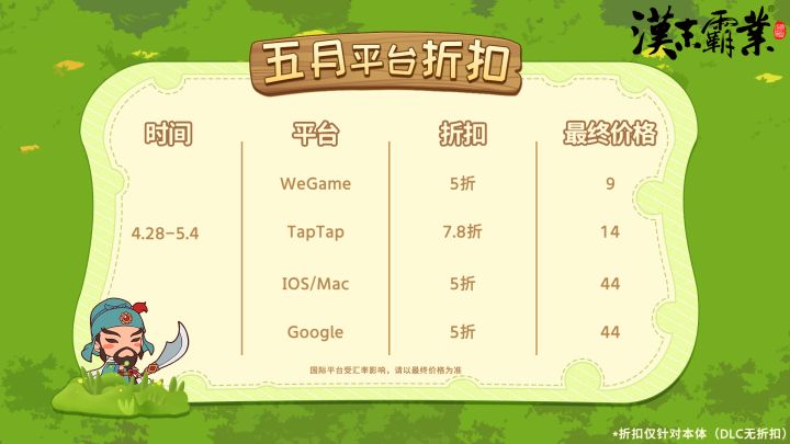 《汉末霸业》秋季特卖公告!(注意各平台时间)