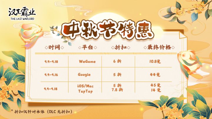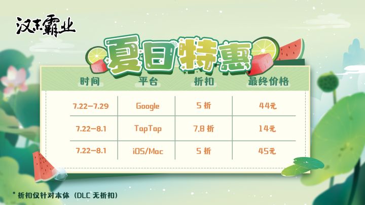 《汉末霸业》八月“暑期特惠节”!Steam和WeGame不可错过~