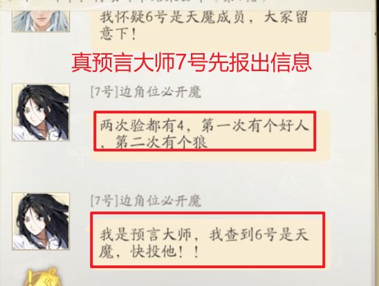 诸位道友别急!如何快速上手【道祖阵营】下篇来咯~本篇主要介绍了【决战阶段】,道祖阵营应该做什么!决战阶段指南一句话总结核心目标:通过证据与聊天逻辑判断天魔成员具体怎么玩?手把手教学来咯~📢 如何判断潜伏的天魔成员:示例(1):两个预言大师对跳,必有一天魔!如果场上出现了两个预言大师,其中一个一定是天魔!怎么做?让我们看看例子!判断方法①-逻辑推理:通过一些简单的推理判断,可以得出
