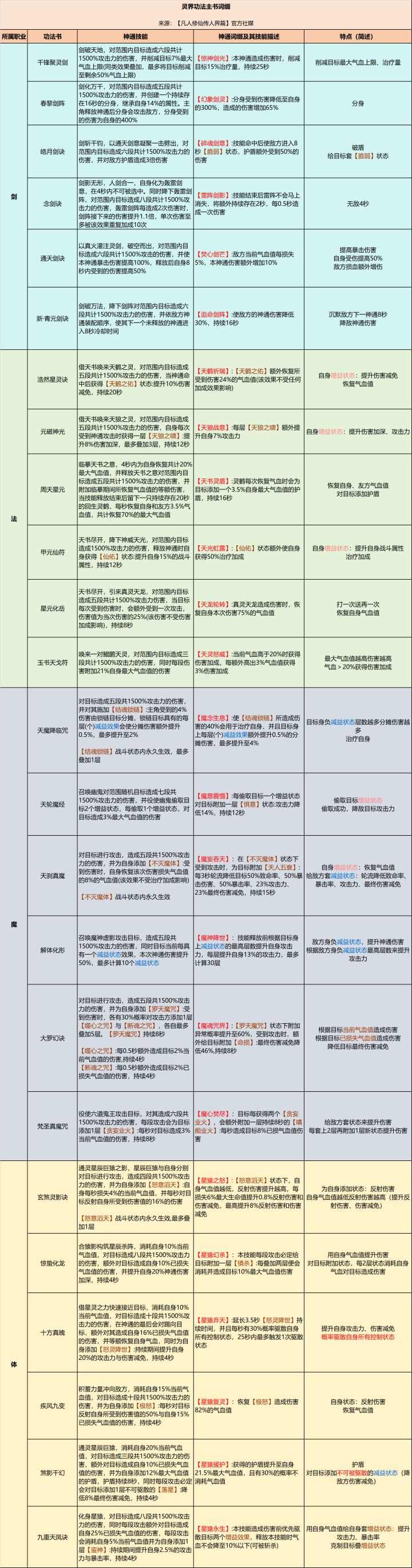 道友们好,我是化意长空服的烟云~光阴。今天给大家带来的是基于自己的理解总结的【灵书辅助词缀】攻略,今天的攻略分享希望对大家有用~本表格数据来源为搜罗各个职业“融合1重,悟境1重”的基础数据,可能与实际情况有出入,请诸位道友以游戏内的实际效果为准哦~* 攻略为玩家投稿,属于个人见解,不代表官方观点 一、先给大家带来的是 主书词缀 的整理,为了更方便大家观看,我按照职业分类的,每个职业各有6个词