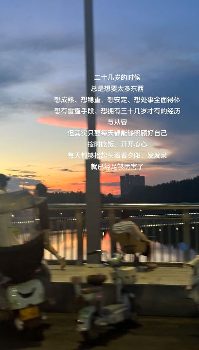 二十几岁的时候总是想要太多东西,想成熟、想稳重、想安定、想初始全面得体、想有雷霆手段、想拥有三十几岁的经历与从容,但其实只要每天能够照顾自己按时吃饭、开开心心每天都够台头看夕阳、发发呆就已经足够厉害了#生活杂谈#TapTap生活区