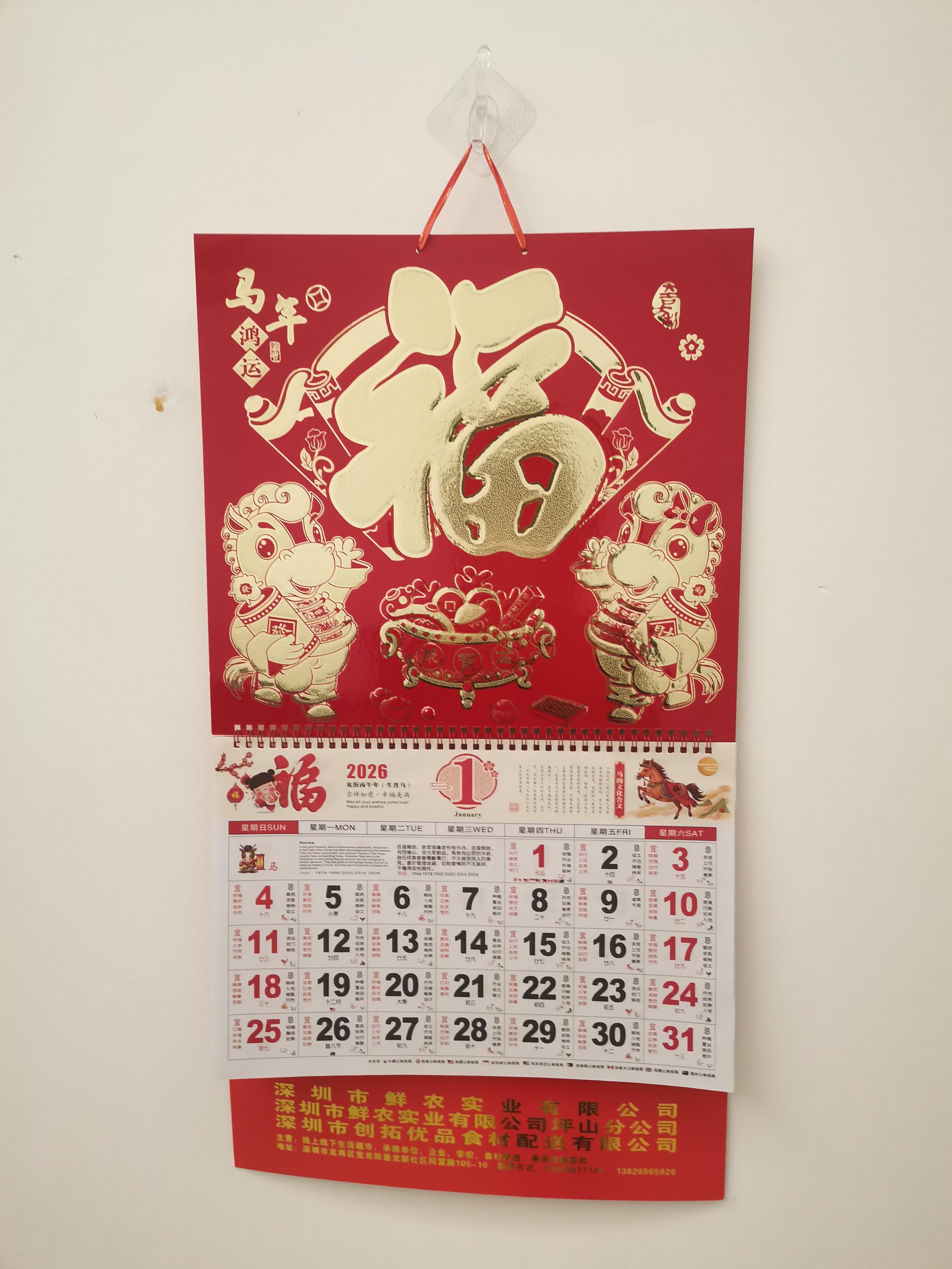 深圳打工第两百七十六天记录一下。今天店铺做活动,买菜就送挂历,咱自己人直接拿了个上去挂着
