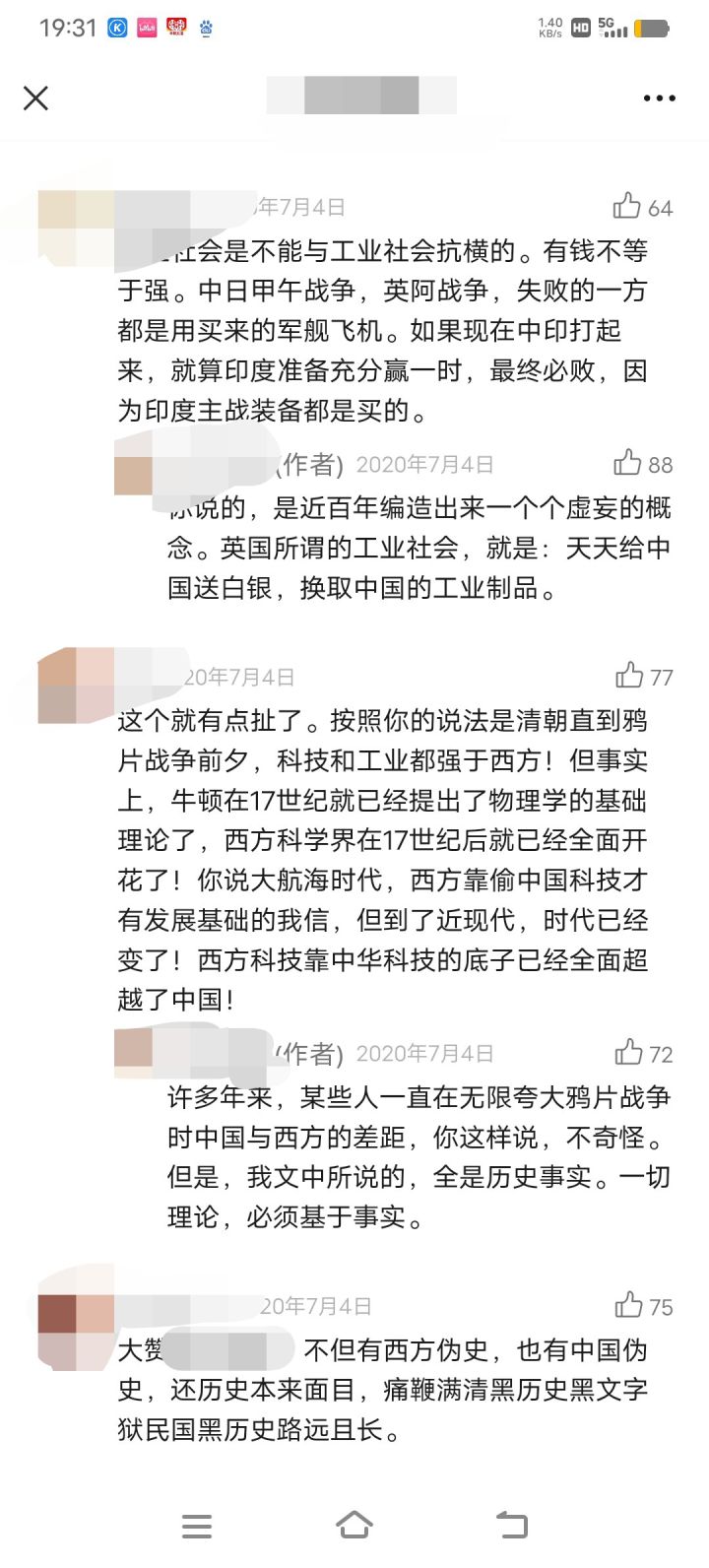 貌似现在许多专业人员都对伪史论这东西嗤之以鼻,觉得他们成不了什么气候所以没必要反驳,然而事实是:这玩意儿的影响力越来越大了……打一个比方,如下文章是某个著名伪史论公众号在2020年时发布的一篇文章,之所以选这篇文章来打比方,原因就在于这一篇的荒谬成度基本上是一下子就能看出来的,“连**战争时,中国的成年男子,鲜有文盲”这种**言论都敢整出来如下是当时这篇文章的留言区情况,可以看到,虽然真的有信
