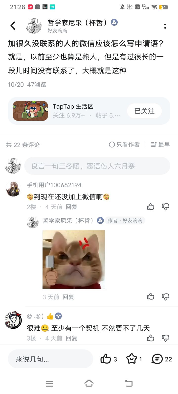 如图,现在这个问题我终于是鼓起勇气解决了,但是……接下来该怎么办?我根本不知道该说什么啊?😭照这样下去的话,要不了几天怕不是又给我删了😭——————————————我想了一下,我觉得还是先发一个表情来打招呼比较稳妥,我准备等到了早上的时候再发可是接下来该怎么办?如果她顺着表情接话了,我倒是可以顺其自然了,可是如果没有呢,再或者是她接了一句让我也不知道该怎么接下去的话,这我咋应对?