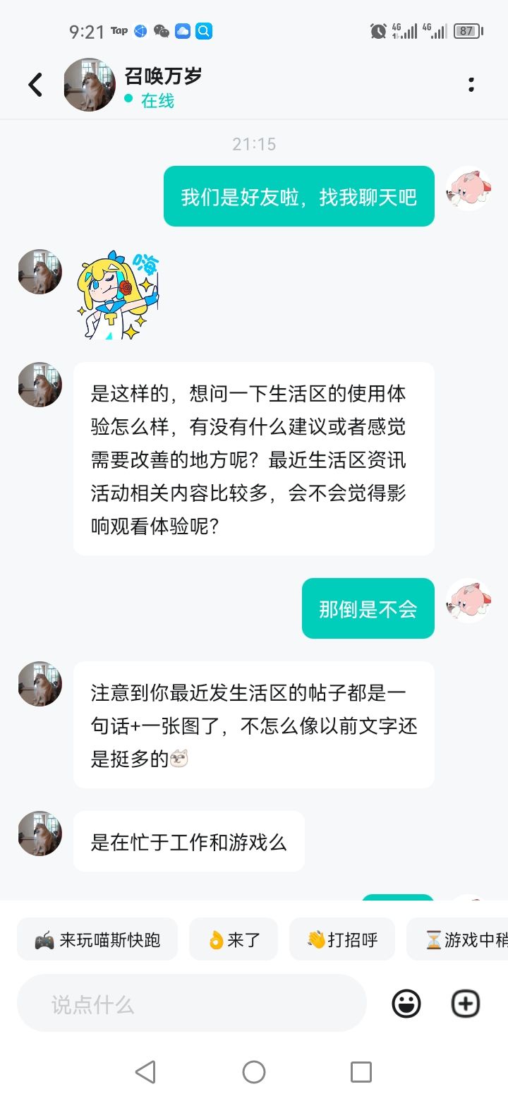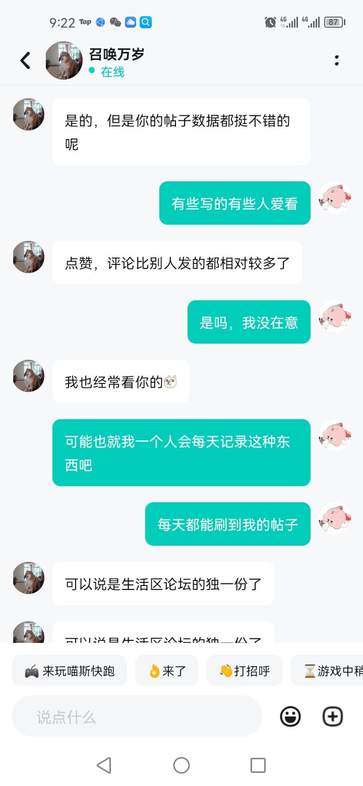 深圳打工第一百天记录一下。今晚回宿舍打开Tap被那个游戏,反正就是版主吧,互关说话,聊天内容你们自己看吧,反正我也不知道自己什么时候也成版主了,至少他是这样说的,生活区的,我每天晚上都会记录工作的一天,说白了就是在Tap写日记,他说我数据不错,获赞数很高,不过我的话也就当说话一样写帖子,没什么含金量,想到什么就写什么,可能大家都喜欢看这种朴素的文笔吧,所以我获赞数才那么高,评论也是,有些为我加