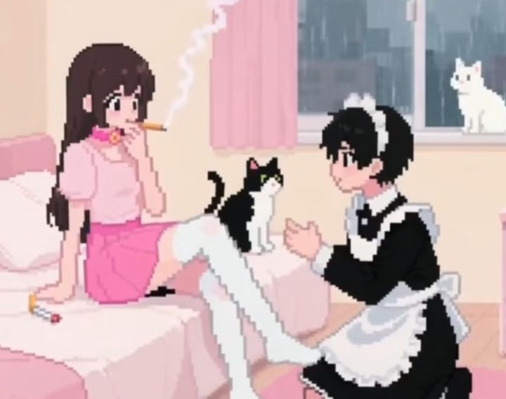 为什么最近流行的比较偏字母向的这种AI图片(图一和图二)都是像素画风的?而一般的动漫画风或者写实画风我好像没刷到过?我一开始的猜测是,想要让AI正常的生成这种类型的图片的话则只能使用像素画风然而我自己试着用一般的动漫画风生成了几张(图三和图四),貌似仍然可以正常生成……