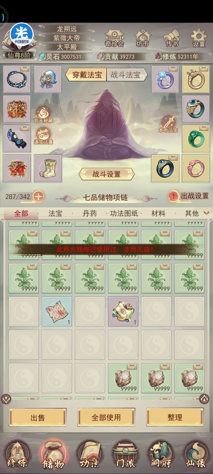 发现天道茶壶的一个BUG?500上灵一个道具?