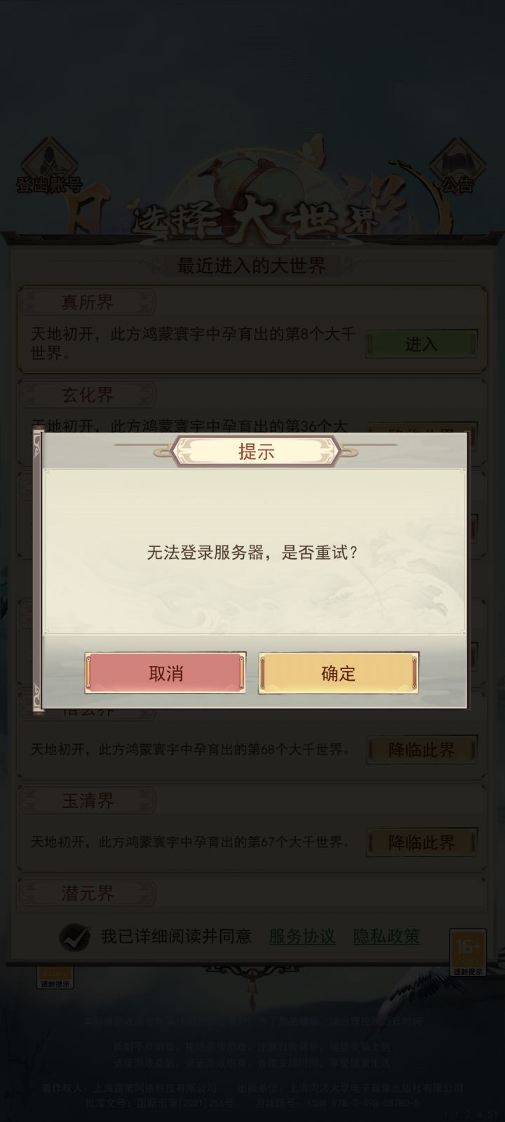 刚刚还在弄玄天图录。。突然无法登陆了!以为网络问题,切到WiFi也连不上,退出游戏重新打开也连不上。。