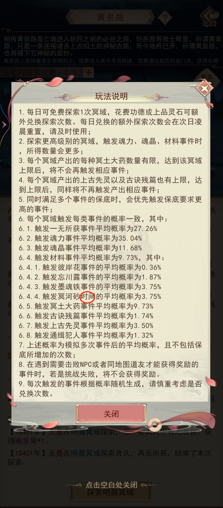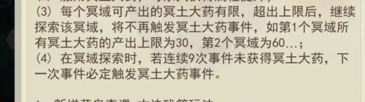 玩家不能知道该域所探索出的冥土大药是否到达上限,会影响游戏体验。建议官方后续可以出一个能够显示各个域所探索出的冥土大药数量或者当某个域的大药到达上限后会提醒玩家