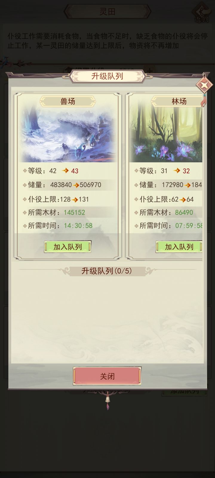 @小仙灵,能不能和开发说下,在升级阵列里添加药园和道童居的升级选项呀