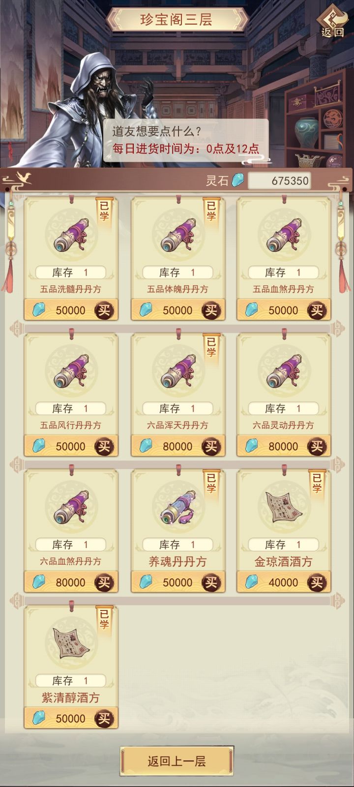 我珍宝阁三层没有赤元酿酒方,官方帮忙恢复一下数据