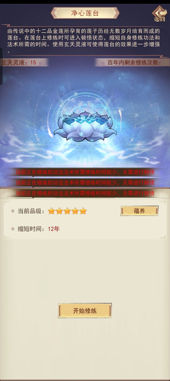 您好,丹阳届万瑞芝,静心莲台总显示无需顿悟,可是没用酒和宗门增幅啊