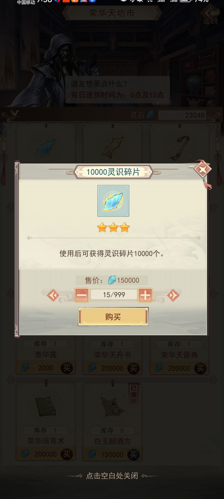 终于遇到bug了 在荣华天,我花15w灵石买灵识结果给我来个酒方? 官方出来一下