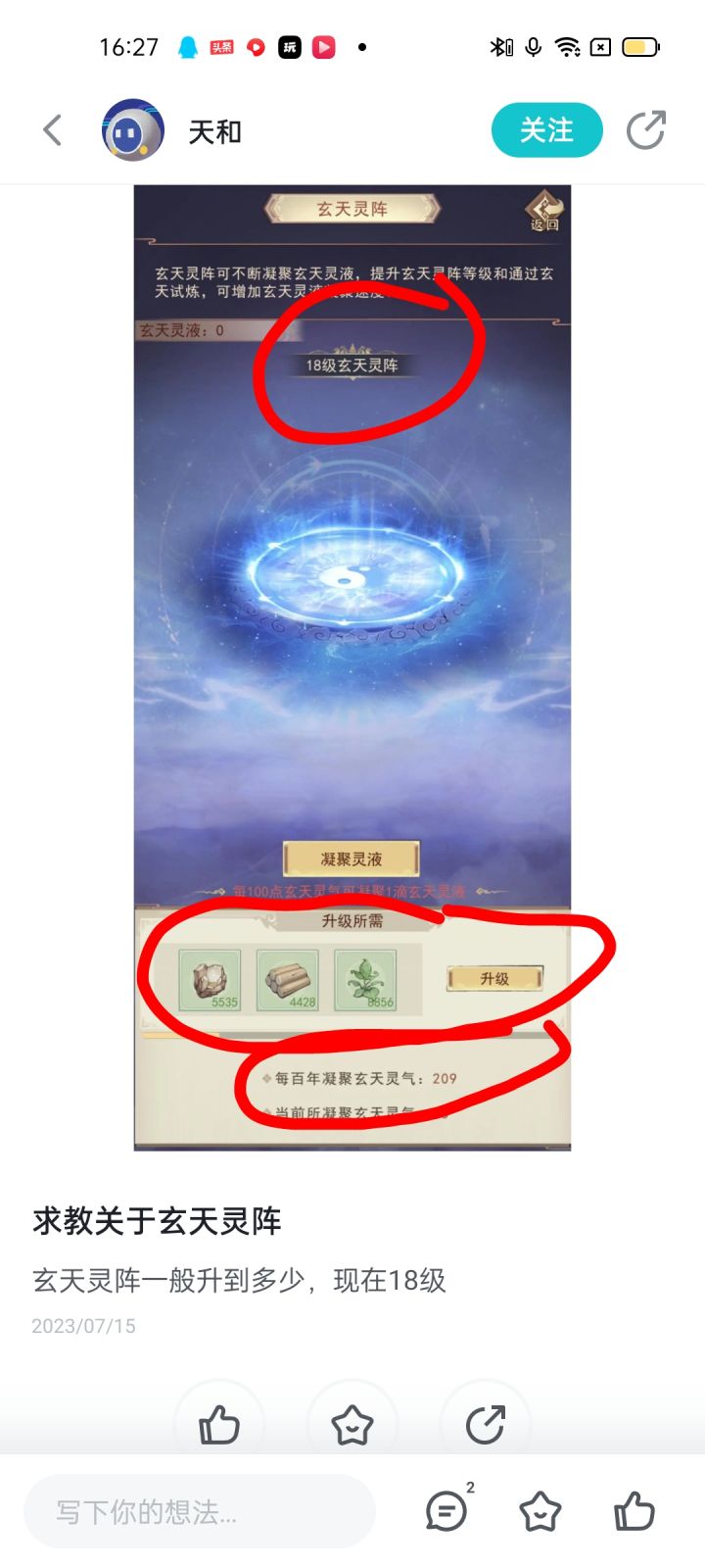 第一张图为我的 26级的灵阵升级消耗的材料和每天获得的灵液第二张为别人的,论坛上看到的差别太大了吧#攻略#凡人传说#游戏讨论