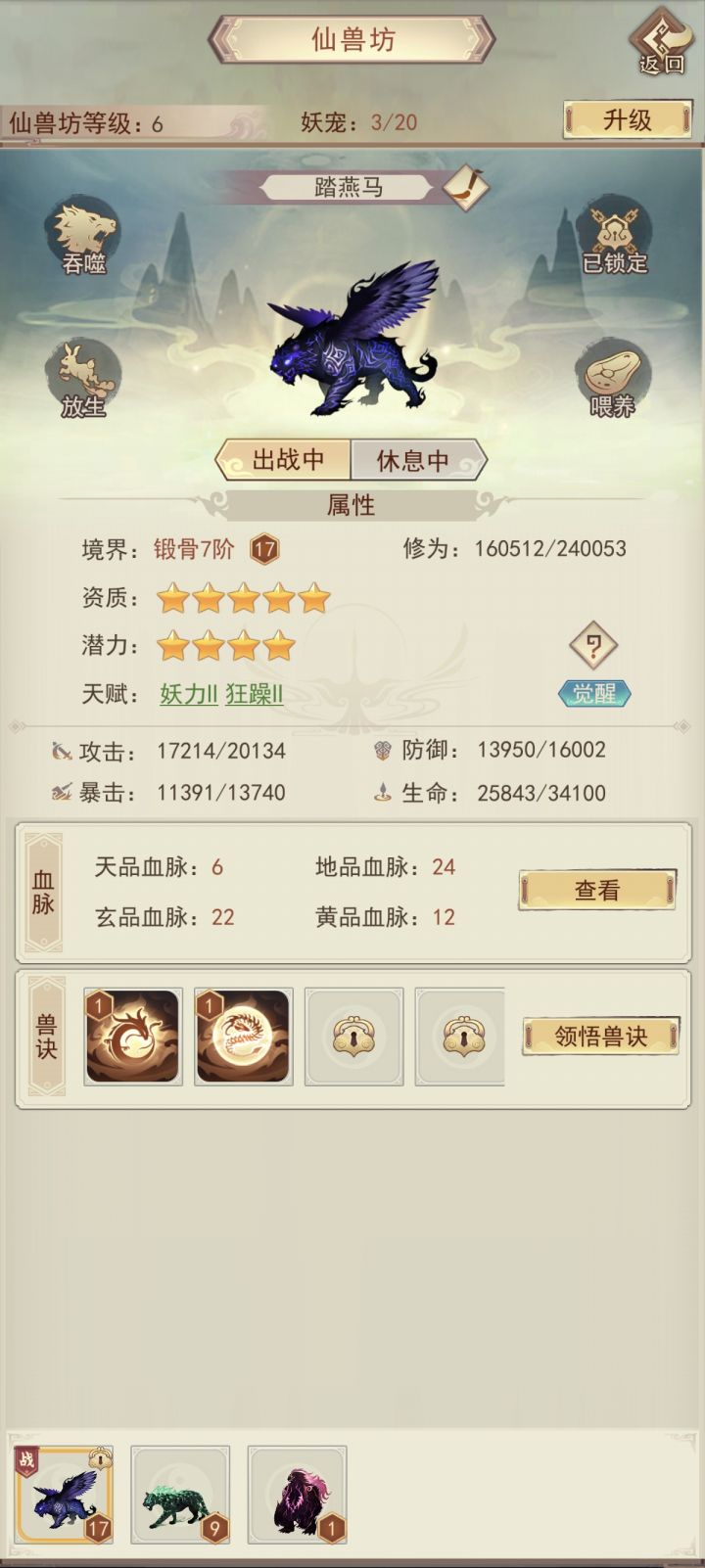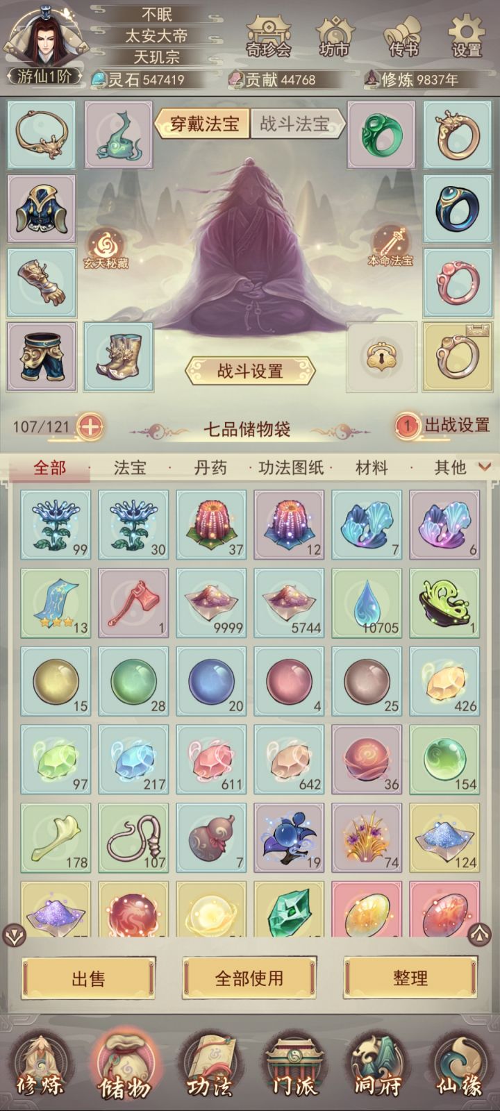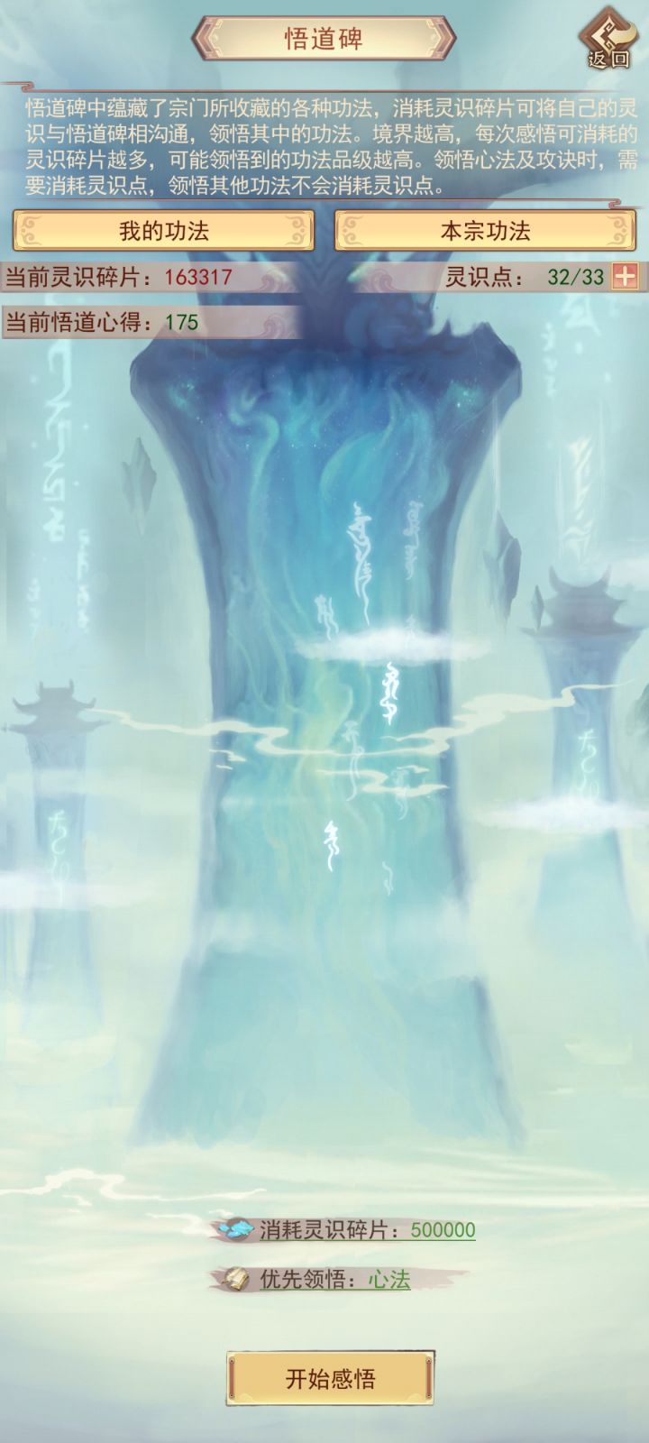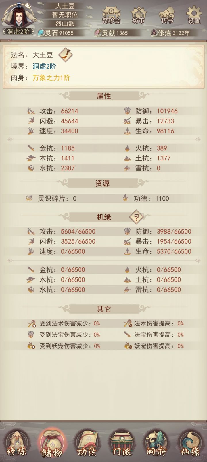 时隔6天再更新一下目前进度。明天晚上应该可以自己打上天了(vivo渠道没有氪佬接引上天只能自强了)。目前装备衣服6星,头和腿5星,其他三星;宗门还差5本攻决,仙术坊还差3-4本心法,等明晚我再继续更新进度叭。