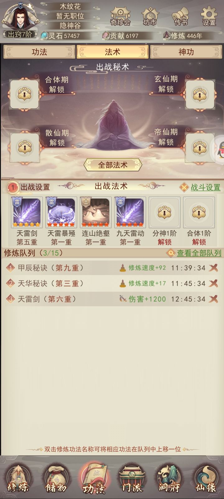 萌新第一次玩,进当时最新的区晚了几天,所以属性拉垮了,今天刚上天一路打到第四个天,然后在第一个天打了个星君,接下来应该干什么,萌新一头雾水啊,只知道等洞虚进仙宗。1. 进仙宗前要先把凡宗的秘决,功法拿完吗,以及掌门的那五个丹(目前打不过掌门)2. 出窍最高的天还是第一天拿凡间的草(凡间浑天还没吃完)3. 功德拿来干吗4. 悟道茶喝修为还是属性5. 如果要把凡间功法拿完,用灵石直接抽还是攒