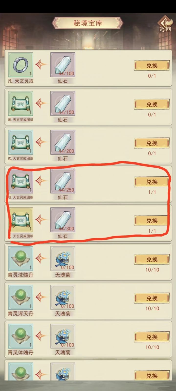 刚刚大乘了,天玄秘境还差两个戒指图纸没换
