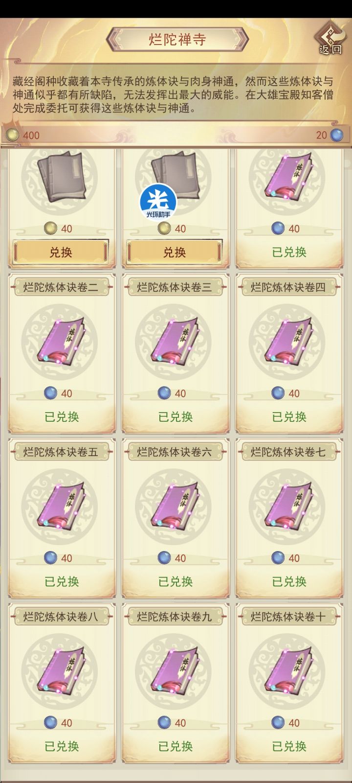 充完之后还有4个商品灵石,就不知道买什么了