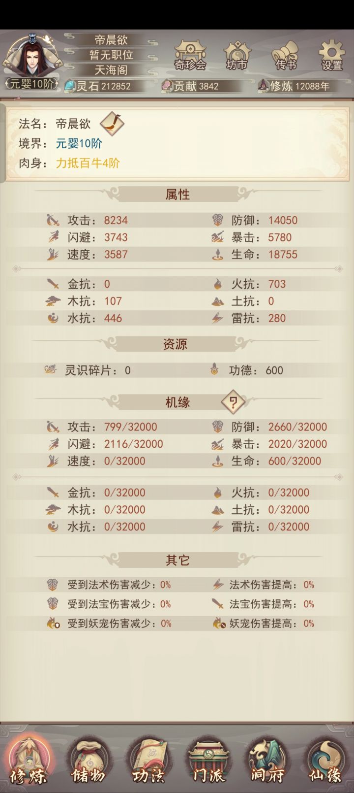 修炼功法好慢哦..之前等了练气期的时候玩了一会儿就删了,前几天无聊找游戏才重新下回来,囤了十万左右的贡献,现在用的差不多了准备继续囤一个月再来玩。还有就是我这个词条是不是养废了,我看攻略要8w防御才能飞升,我快出窍了才1w多,另外没有运转的功法属性他会加上吗?还是说只有运转的功法才能加属性,有没有大佬解答一下疑惑