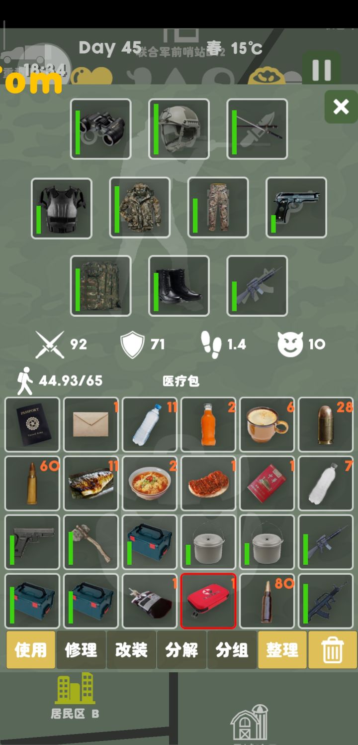工人,这个就是居民A霸主,初期特别好起基地,中期特别富有,一组布80个,不占负重,而且价值96,换什么都好使,就是没一键分解,即使到中期也得摁分解。红区即使全毕业装,也需要看脸,容易多刷个黄怪伤害不足剩下10秒被破甲。