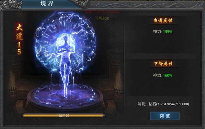 规则说明1、到达第八大陆开启境界功能2、提升境界可大幅提升神力属性3、境界升级需要消耗龙币,突破则需要消耗钻石#攻略