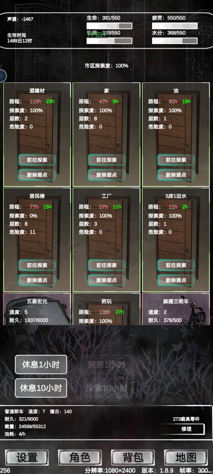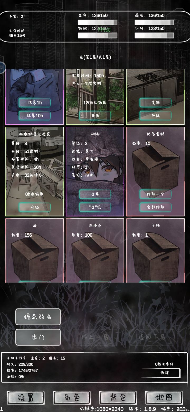 Bug 太多,而且太卡了,让我忍不住好奇作者是拿什么写的游戏……你是不是没清理对象池?干脆在这里了一个 Bug 清单,坐等作者来修:家里的集水器,收获后,集水器卡住不动(但其实已经收获、布置好了)家里的床,睡觉无效(有概率第二次睡觉有效),搞得我都是出去睡觉家里的集水器、农田升到 3 级,时间卡住(集水器 0h、农田 100h……永远的 100h)切换了车之后,时间没有刷新,换了电驴之后