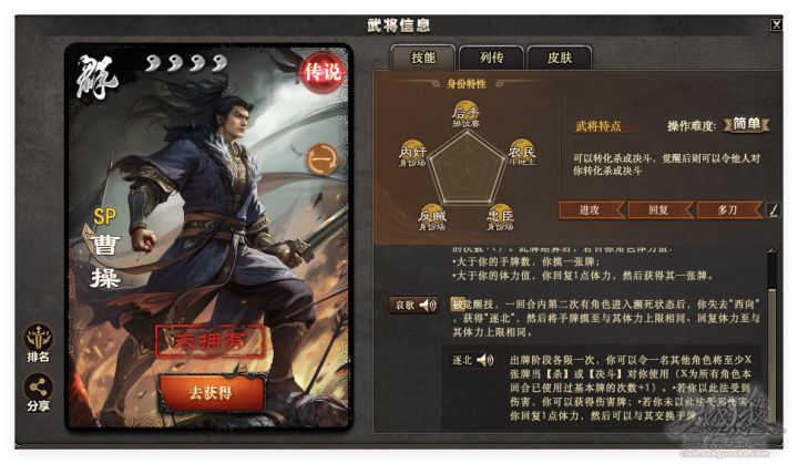 原创作者:鲱鱼喵丶原帖链接:https://club.sanguosha.com/thread-1828488-1-1.html微信搜索‘’三国桃园‘’小程序,更多精彩内容等你来看~ 在周年解密中,征战的主线人物是SP曹操,余烬主线人物是标/界曹操,应该是为周年庆魔曹操的首发宣传预热。这位汉末魏晋第一英雄,对人类军事,文化,经济发展都有卓越的贡献,在人类文明史册上,留下了鞭挞宇内,领衔建安,