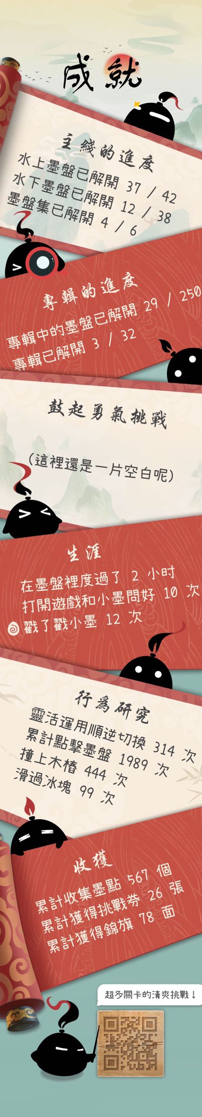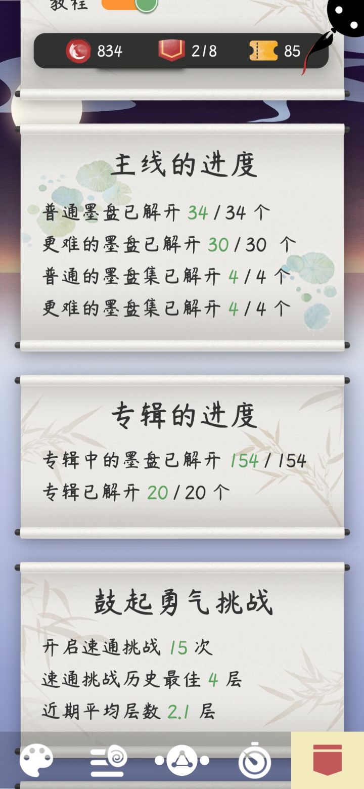 我通关了,一下子失去了梦想(有空了会尽量写点攻略),本来看帖子里落子无悔(专辑18规则:只能顺时针转,不能悔)的规则感觉会很难,所以玩的时候跳过了,过了专辑20才回过头来过专辑18,但是结果最后花的时间可能才专辑20的四分之一,肝了几天,通关了之后感觉很开心,时间肯定不止统计的11小时,统计里居然没有和小墨互动的次数,我可是连点一千下了,居然没有统计,小墨肯定是故意的(部分关卡都是用笨办法一个一个